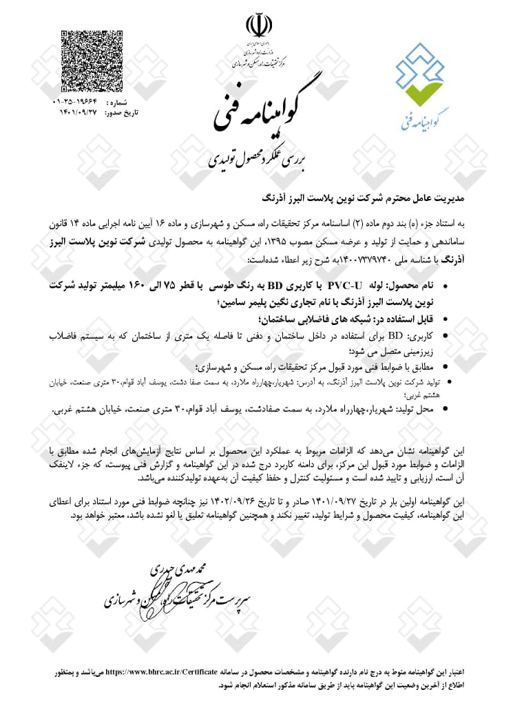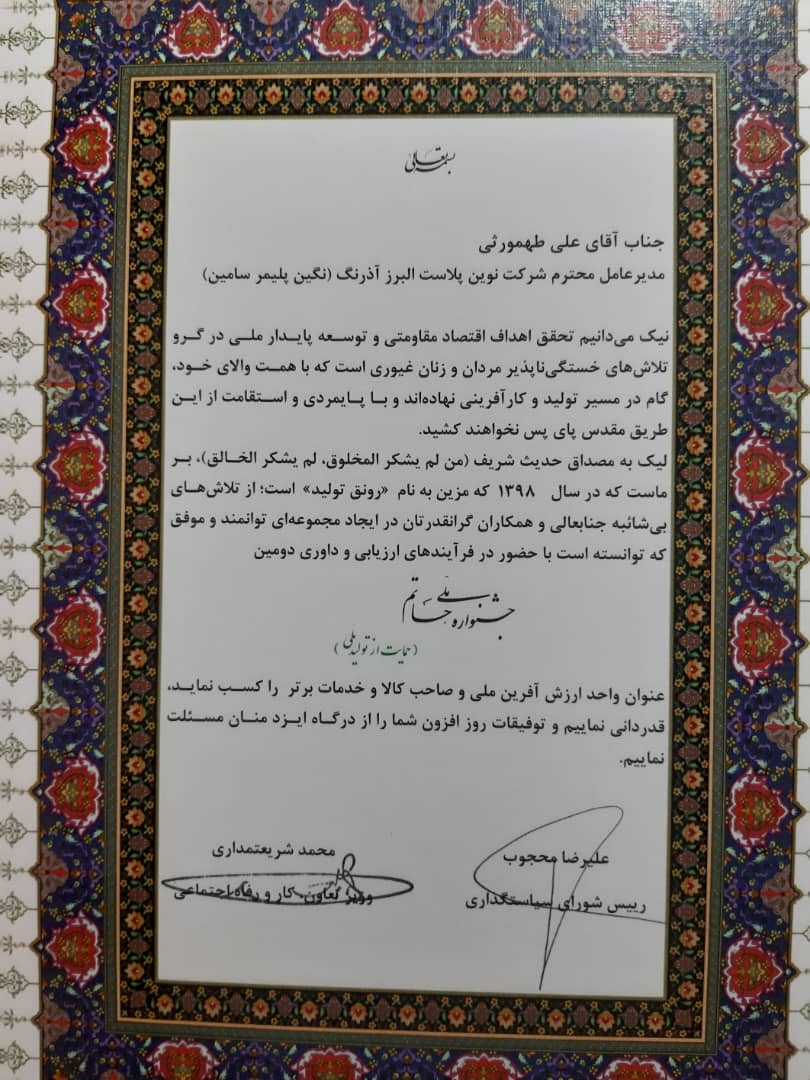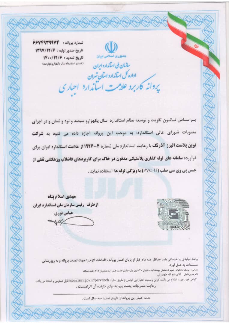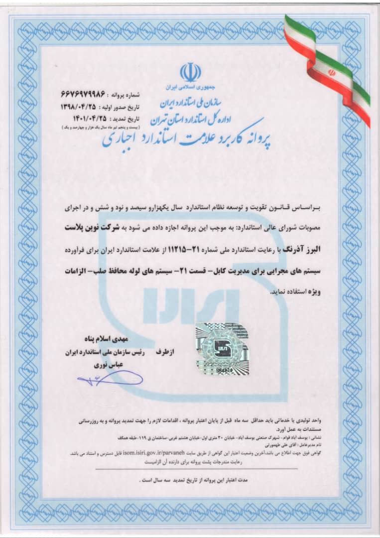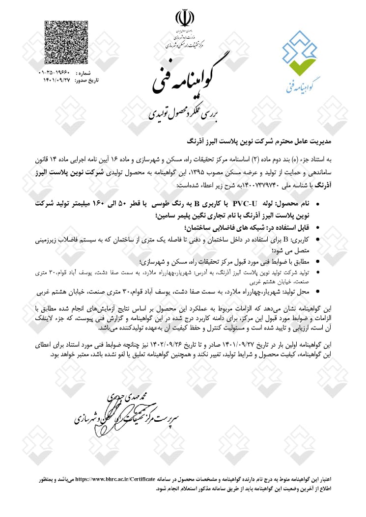 شرکت نوین پلاست البرز آذرنگ با توجه به گســـــترش روزافزون ساختمان سازی در کشـور و در جهت رشد و ارتقاء صنعت ساختمان بر پایه خط مشـی و اهداف نظام خود و با هدف خودکفایی کشـور و تامین محصــولات مورد نیاز بازار مصـرف ؛ در سال ۱۳۸۳ به بهره برداری رسید و از همان ابتدا عزم خود را بر تولید محصــولات با کیفیت جزم نمود و در همین راستا به خرید ماشین آلات تولید و تجهیزات تجهیزات آزمایشـــگاهی و ارتقا دانش فنی مطابق با تکنولوژی های مدرن و استانداردهای روز به منظور نیل به رضایت کامل مشـــتریان اهتمام ورزیده است.